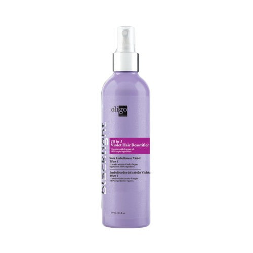 The Blacklight 18 in 1 Violet Hair Beautifier is a lightweight mist that prepares, protects and beautifies the hair while delivering 18 essential benefits with an extra benefit of neutralizing unwanted warm tonalities on levels 9 and 10.